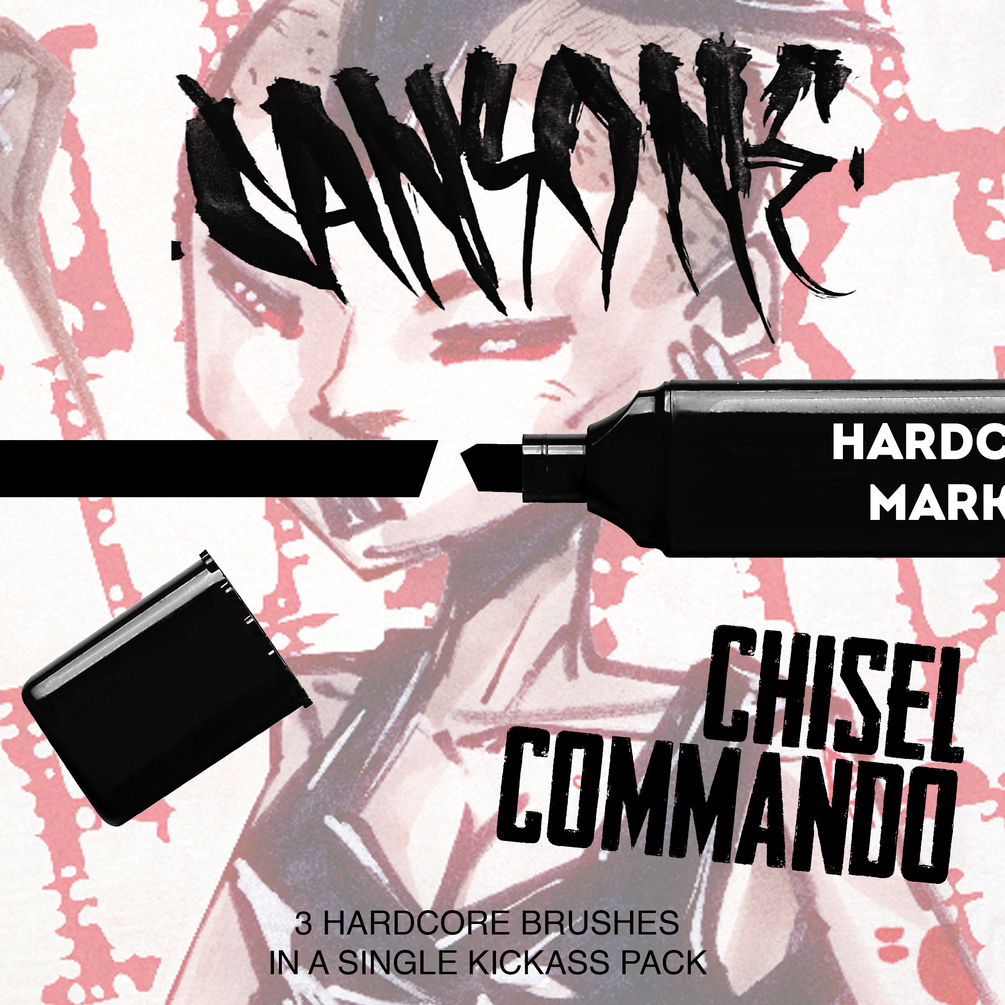 you get 3 super hardcore brushes to sketch and unleash mayhem on your digital canvas, forget nice gradients and watercolors, let the ink flow!